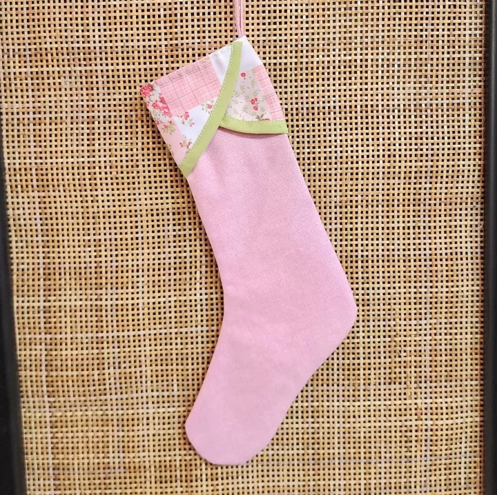 أضف لمسة من الرقة والفرح إلى موسم الأعياد مع جوارب ديكور مصممة بلون وردي هادئ وطرف علوي مزخرف بنقشة زهرية مع شريط أخضر فاتح. تجمع هذه الجورب بين البساطة والنعومة، ما يجعلها مثالية كـ جوراب زينة معلّق على الجدران أو الرفوف أو حتى في زوايا الهدايا. تصميمها اليدوي الأنيق يضفي طابعًا احتفاليًا راقيًا ضمن تشكيلة شراريب وجوارب قماش فريدة.