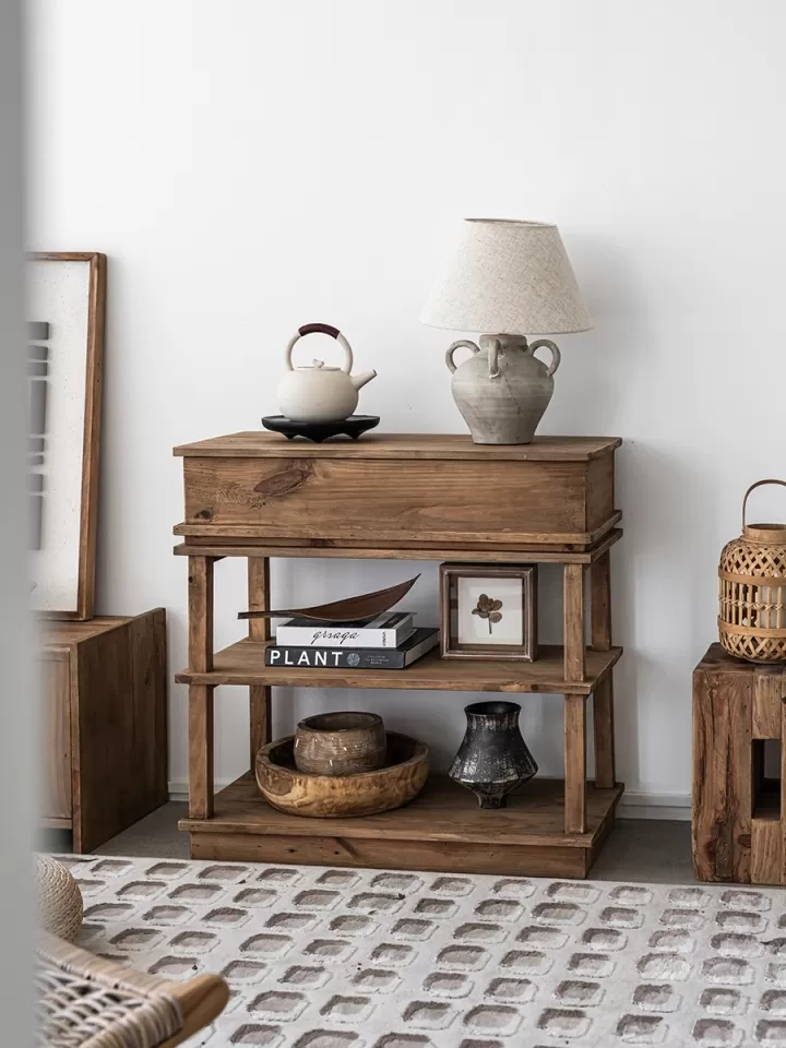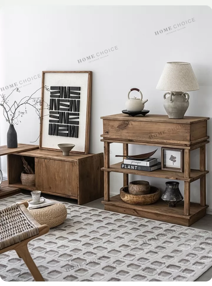 طاولة كونسول خشب ريفية بتفاصيل تخزينية مميزة | كونسول خشب يعكس جمال الطبيعة في أبهى صورة